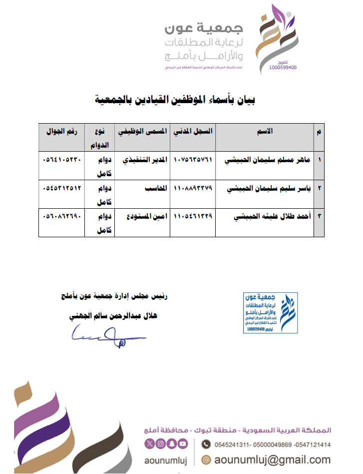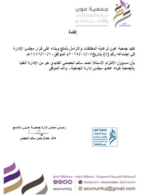 شهادة ترخيص جمعية عون لرعاية المطلقات والارامل شهادة تسجيل جمعية عون لرعاية المطلقات والارامل